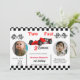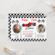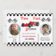 Crescendo Dois veículos velozes segundos aniversários gêmeos correndo em convites de festas de aniversários de crianças adoráveis com uma corrida de carros vermelhos. Um tema de carro de corrida para uma festa de segundo aniversário com uma ilustração de um carro de vintagem vermelho e as frases "Crescendo muito rápido."