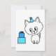 Uma imagem agradável dos desenhos animados de um gato branco pequeno em um chapéu azul do aniversário que senta-se ao lado de alguns presentes de aniversário.