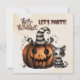 Convite Adorável de Gatinhos de Halloween Black e White Striped. Preto e branco super fofos e abóboras. Perfeito para uma garota cair na festa de aniversário. Fácil de editar todas as suas informações importantes.