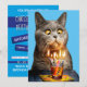 Convite Gato Com Copo De Bebida De Aniversário