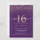 Convite Gato de rosa dourado confete púrpura Sweet 16