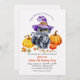 Um convite bonito comemorar um Dia das Bruxas - aniversário ou o Outono. As características de design um gato pequeno com um chapéu roxo cercado por abóboras e pelas folhas de queda. (<a href="https://www.freepik.com/free-vector/halloween-cute-cat-background-in-watercolor_2906077.htm">Projetado por Freepik</a>). <br/><br/>O cartão é fácil de personalizar com seus fraseio, pia batismal e cor da pia batismal<br/><br/>Não exatamente que você está procurando? Todos nossos produtos podem ser projetados para encontrar suas necessidades em nenhuma sobretaxa<br/><br/>Contacte-nos simplesmente em heartfelthelper@gmail.com. <br/><br/>Produtos de coordenação disponíveis: Apenas pergunte-nos!