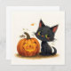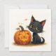 Abraçe o espírito do Halloween com este convite encantador, apresentando um gato preto brincalhão aninhado entre uma abóbora brilhante e talhada e folhas de outono caídas. Este design é perfeito para aqueles que amam o charme atemporal do Halloween e apreciam um toque de arte caprichosa.