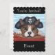 Este convite de festa é preto com um gato marrom fofo de grandes olhos verdes vestindo um chapéu de pirata preto com uma caveira espiando sobre a borda de um barco vermelho sob um céu azul. Personalize suas informações na frente e no verso com os modelos.