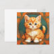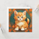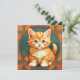 Cartão com um gato laranja no estilo de Alphonse Mucha! Este adorável gatinho com olhos verdes é emoldurado por folhas de outono. Um presente maravilhoso para amantes de gatos e colecionadores de Art Nouveau!