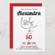 Convide os convidados para o seu evento com este convite de aniversário de 50 anos bem-humorado, apresentando um design único de um esboço de gato de desenho animado preto e branco vintage dançando, desenhado por Edward Lear, colocado contra um simples fundo branco. O verso do cartão é um vermelho elegante. O texto é totalmente personalizável, permitindo que você o personalize também para uma celebração de aniversário ou aniversário de casamento. Este convite também está disponível em formato digital e outras variações de cores, encomende o seu agora!
