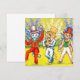Cartão com a pintura animal de Louis Wain Três Gatos Executando a Canção e a Dança (1860-1939). Três gatos antropomorfizados vestindo tuxedos e chapéus de topo dançam e cantam com seus lenços e canes. Um presente maravilhoso para amantes de gatos e arte inglesa.