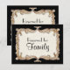 PALETA DE CORES: Preto, creme e aparência de metal dourado falso. COLEÇÃO DE DESIGN: Sinais personalizados correspondentes de dois lados, "Reservado para a Família" para sua cerimônia de casamento ou recepção. Você pode personalizar cada sinal para refletir cada uso, incluindo "Mesa de Sobremesas", "Mesa de Cartões", "Livro de Convidados" e mais. Este é um Conjunto de Convite de Casamento que inclui a maioria dos itens que você pode precisar para coordenar a decoração do seu casamento. Usando arte linear floral estilizada vintage e antiquada Art Déco e Art Nouveau original, Audrey Jeanne Roberts projetou graficamente este look de folha de ouro glamoroso, uma aparência dimensional luxuosa de "ouro talhado" com folhas enroladas, girando em torno da borda com grande floreio. O trabalho de pergaminho é elegante e sofisticado. Há também divisores de tipografia ornamentados de impressor. Abaixo da moldura, há um padrão de design de fundo de renda suave em creme. Este look é perfeito para um