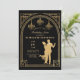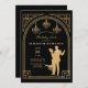Uma boa diversão rude espera com este elegante convite de festas de aniversário soireita com um tema estrondoso dos anos 20, com um quadro de arco deco e a silhueta de uma mulher elegante dançando com seu parceiro. Um modelo convite de festas de Gatsby perfeito para um tema Gatsby Excelente. Quer seja para uma festa de aniversário 40th, 50th, 60th, 70 ou 80, ou para uma vintena dos anos 20, esta vintage art deco nouveau frame com um efeito de cobertura de folha de ouro (isto é um efeito digital, não uma folha de papel real!) brilhará brilhante. Uma festa de 20 anos rugindo para uma boneca de qualquer idade. Também é adequado para um evento de gala empresarial ou empresarial.