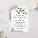 Um convite ao ar livre do Eucalyptus é um convite maravilhosamente desenhado que é perfeito para qualquer evento ou reunião ao ar livre. O convite geralmente apresenta um design elegante e rústico, com folhas verdes de eucalipto exuberantes como o principal ponto focal. As folhas costumam servir como borda natural ou quadro para o texto e gráficos do convite, criando um olhar sofisticado e convidativo. Estes convites são frequentemente usados para eventos ao ar livre, como casamentos, festas de jardim e outras celebrações de temas da natureza. Eles podem ser personalizados para incluir os detalhes específicos do evento, como informações de data, hora, local e RSVP. Alguns convites para o eucalipto ao ar livre também incluem elementos de design adicionais, como sotaques florais, fundos de aquarela ou fontes de caligrafia, para adicionar um toque extra de elegância.