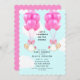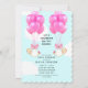Criativas gêmeas chás de fraldas convidam gêmeas gêmeas e balões cor-de-rosa.