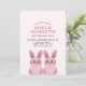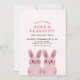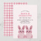 Tema de coelhinho fofo para a festa de aniversário da irmã gêmea, apresentando dois coelhinhos bebês cor-de-rosa usando óculos cor-de-rosa. VOCÊ PODE REMOVER OS ÓCULOS! Parte de trás com padrão xadrez.