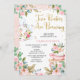 Gêmeas Florais Rosa Bebê está a Criar Chá de fraldas Convite Raparigas gêmeas Doce 2 bebês estão a fazer o convite para chás de fraldas temáticos com pote de chá e xícaras Ilustrações e arranjos florais. O design também apresenta alguns pontos de ouro falsos e rumo. Os dois bebês desta gêmea estão fazendo um convite para o chá de fraldas é ideal para um chá de fraldas temático.