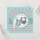 Doce estampa de bolinhas em macacões com gravata e laço em varal de roupa e laço e fita com aparência 3D para cartão de convite de baby shower de gêmeos meninos. As cores são aqua e cinza.