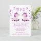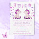 Convite para Chá de Bebê de Gêmeos Unicórnio Fofos 2 Meninas. Celebre suas gêmeas adoráveis com este convite de chá de bebê temático de unicórnio com bolinhas rosa e roxo! Com dois unicórnios doces, este convite certamente fará com que seus convidados sintam a alegria e a expectativa da sua celebração de gêmeos que está por vir.