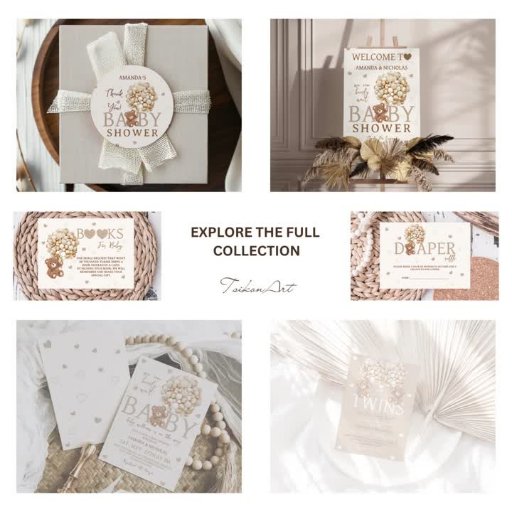 Celebre a chegada dos seus gêmeos com o adorável convite de festa de bebê neutro em gênero da TsikonArts! Urso de pelúcia aninhado entre bege suave e dourado marfim , cercado por um cenário sonhador de corações pastel em aquarela marrom claro, É a maneira perfeita de definir o tom para sua celebração minimalista de estilo boêmio! Não se esqueça de explorar a coleção completa.