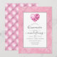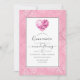 Convite de quinceanera em forma de coração, de gemstone rosa, com o tema quinceanera, com elegante tipografia de escrita manual. Um luxo de luxo tufado em losango enfiado em couro estofado elogia o cenário de um caso brilhante.