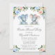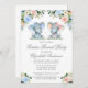 Moderno Elegante Aquarela Azul Branco Floral e Cor Branca Cor-de-Rosa Floral Elefantes Bebês Brancos Gênero Convite de festas Revelar. Inclui belos rosas azuis de cor aquosa, rosas cor-de-rosa, flores brancas e verde botânico. Texto da Cinza prateada. Elefante Azul e Elefante Rosa com arcos.