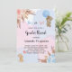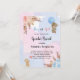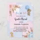 Para um chá de fraldas moderno estilo boho, gênero revela festa. Um fundo azul, cor-de-rosa, branco, colorido d'água. Decorados com ouro rosa, flores, rosas, erva-pampas, cor-de-rosa e azul-claro, e dois ursos peludos com balões. Personalize e adicione um nome e detalhes da parte.