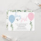 Convite Gênero virtual Revelar balões cor-de-rosa azuis ve