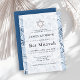 This chic and modern Bar Mitzvah invitation features a white background with a geometric pattern in indigo blue. Personalize it for your needs. You can find matching products at my store.