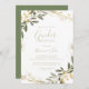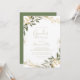 Este convite de festas geométrico de ouro verde-queda revela que é perfeito para um gênero de bebê moderno. A design apresenta uma bela estrutura geométrica dourada com folhas verdes elegantes.