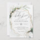 Convite Geométrico Faux Dourado e Chá de fraldas Greenery. As aquarelas brancas e a tipografia moderna complementam a design. Personalize este Convite para Chá de fraldas com os detalhes do seu chá de fraldas de forma fácil e rápida, pressione o botão personalizá-lo para reorganizar e formate o estilo e o posicionamento do texto.