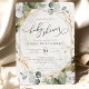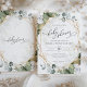 Convite Geométrico Faux Dourado e Chá de fraldas Greenery. As aquarelas brancas e a tipografia moderna complementam a design. Personalize este Convite para Chá de fraldas com os detalhes do seu chá de fraldas de forma fácil e rápida, pressione o botão personalizá-lo para reorganizar e formate o estilo e o posicionamento do texto.