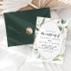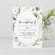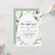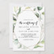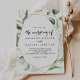 Este verde de ouro geométrico elegante, o casamento do convite é perfeito para um casamento elegante. O design apresenta folhas de eucalipto verde botânico pintadas manualmente, enfeitando uma armação geométrica dourada.
