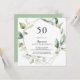Este convite de aniversário geométrico elegante de ouro verde-50º é perfeito para uma festa de aniversário moderna. O design apresenta folhas de eucalipto verde botânico pintadas manualmente, enfeitando uma armação geométrica dourada.