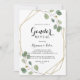 Este gênero geométrico de verde de eucalipto revela que o convite de festas é perfeito para um simples gênero de bebê. O design apresenta ramificações botânicas verdes de eucalipto desenhadas à mão e folhas enfeitando uma moldura geométrica.