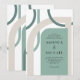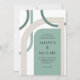 Um toque moderno num chique estilo art déco de dias passados, este convite de casamento colorido tem formas geométricas curvas entrelaçadas em torno do layout do texto do convite. As cores incluem a paleta de cores popular de verde musgo e bege marfim neutro emoldurando seu texto. Os resultados são únicos e artísticos com um apelo retrô. Esta paleta de cores é uma escolha maravilhosa para casamentos na praia ou de destino.