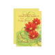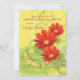 Um convite alegre com três margaridas de gerbera em uma cor vermelha brilhante. O fundo amarelo ensolarado tem folhagem de abstrato e espirros. Adequado para qualquer celebração feliz.