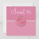 Convite Gérbera Rosa, Pérolas e Corações Doce 16 Festa