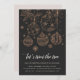 Convide amigos para ajudar a decorar sua árvore sobre mordidas e coquetéis com nossos convites de festas de limpeza de árvores de Natal com ornamentos falsos de folhas de rosa de ouro e flocos de neve em um fundo profundo de cinzas de carvão. Personalize com os detalhes do seu partido abaixo.