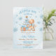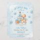 Um homenzinho está a caminho! Chá de fraldas de Natal com um adorável homem de pão de gengibre, árvore de Natal, flocos de presente e neve todos em azul e bege. Personalize facilmente todo o texto. - Kate Eden Art