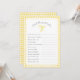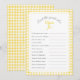 Perguntas editáveis sobre o título do jogo e texto para o chá de fraldas ou chá de panela. Apresenta um arco pintado manualmente com a xadrez gingham amarelo alaranjado quadro e backer.