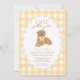 Convite Gingham Amarelo, primeiro aniversario Ano, Puppy