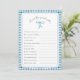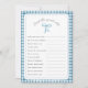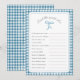 Perguntas editáveis sobre o título do jogo e texto para o chá de fraldas ou chá de panela. Apresenta um arco pintado manualmente com o quadro azul denim e o backer da xadrez gingham.