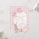 Convite Gingham Coquette Pink Floral Bunny Baby Shower