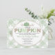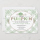 Convite Gingham Green Bompkin fall confetti chá de fraldas