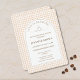 Host a cozy and elegant celebration with this Love Is Brewing bridal shower invitation, designed with a soft neutral gingham background and a modern arched frame. The minimalist coffee cup illustration adds a warm café-inspired touch while keeping the design timeless and sophisticated. All text is fully editable, allowing you to personalize names, dates, and event details with ease. The clean gingham back design offers a polished finish, making this invitation perfect for coffee-themed, brunch, or neutral bridal showers. Ideal for fall gatherings, daytime celebrations, and modern brides who love understated elegance, this invitation blends cozy charm with contemporary style. All text and colors are fully editable to match your bridal shower theme.