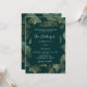 Fundo verde decorado com um padrão de folha de ginkgo. Personalize e adicione seus nomes e detalhes do casamento. Cartas brancas.