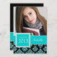 GIRLY TEAL GLITTER DAMASK FORMANDO FOTO. Moderno, giro, divertido, bonito, mas sofisticado e elegante, este Convite de festas personalizado Black and Aqua Blue Teal Glitter Damask Class de 2013 com sua foto de formando é a forma perfeita de convidar seus convidados para a festa de formatura de sua filha.Nota: Efeito de brilho IMPRESSO. Seja para o seu mais velho segundo grau, formando universitário ou graduação universitária, este convite de festas brilhante será perfeito para ela. Design de Elke Clarke©.
