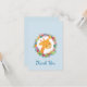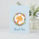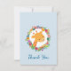 Um cartões de agradecimentos de festa (chá de fraldas, aniversário etc...) com uma ilustração de uma linda face girafa sorridente, rodeada por uma coroa de flores tropicais aquáticas. Colorida e fofa.