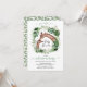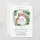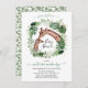 Girafa moderna e fofa e seus convites para o bebê da selva. Sexo neutro para ser um menino ou uma menina. Sombras de forragem verde tropical com um padrão verde de girafa esmaecida leve de volta.