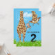 Uma girafa bonita na grama com um macaco e margaridas para convite para segundos aniversários.