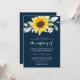 Convite de Casamento Girasol e Geométrico Rústico Azul Marinho