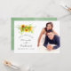 Cartões de foto de salva data de casamento de girassol pintados à mão com fundo de lavagem de aquarela verde sage.