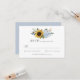 Placa RSVP de Casamento Russo de Flores Azuis Derramadas. Cartão de Resposta Floral Azul Dusty Floral Elegante de Script Moderno